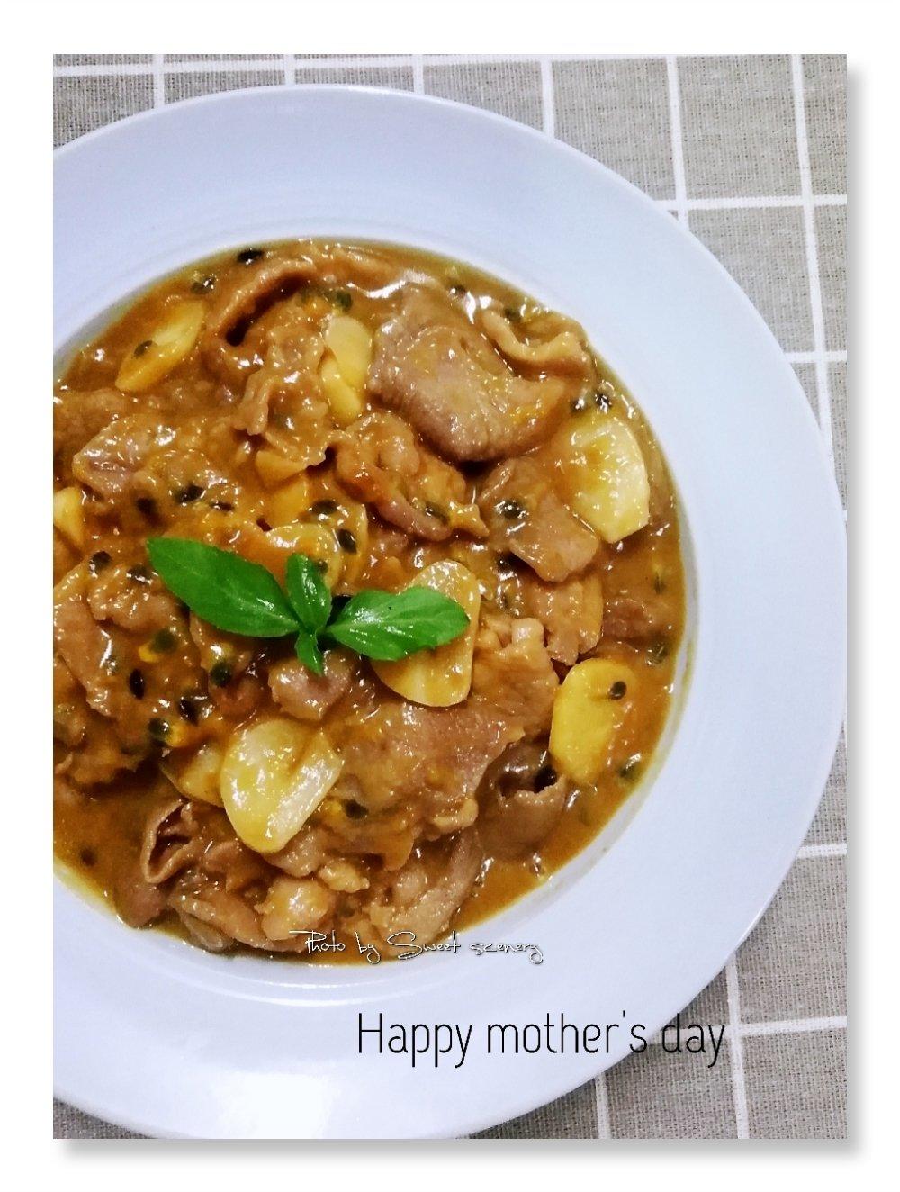 甜酸百香果蒜炒肉片
