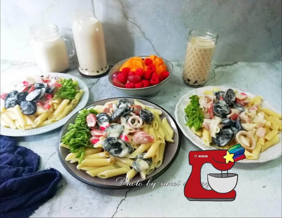 白汁墨鱼肠海鲜汇意粉