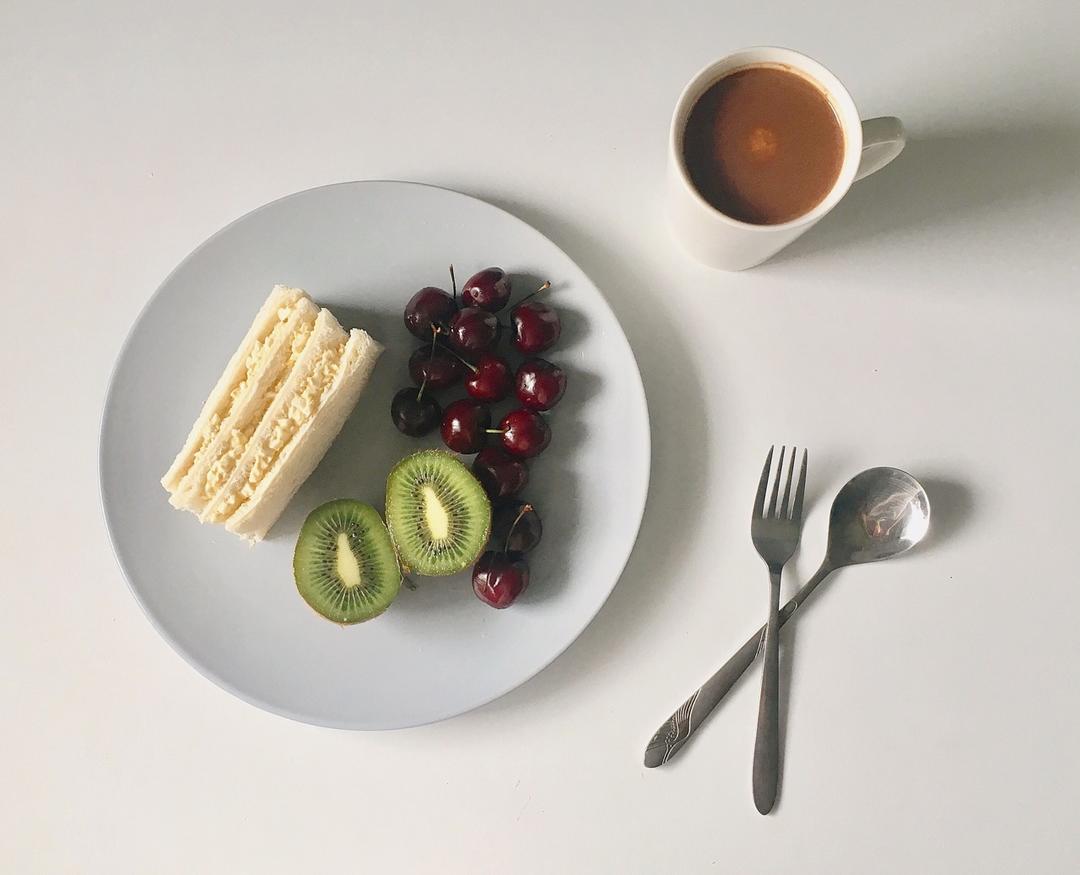 鸡蛋三明治 巧克力奶茶 猕猴桃 樱桃