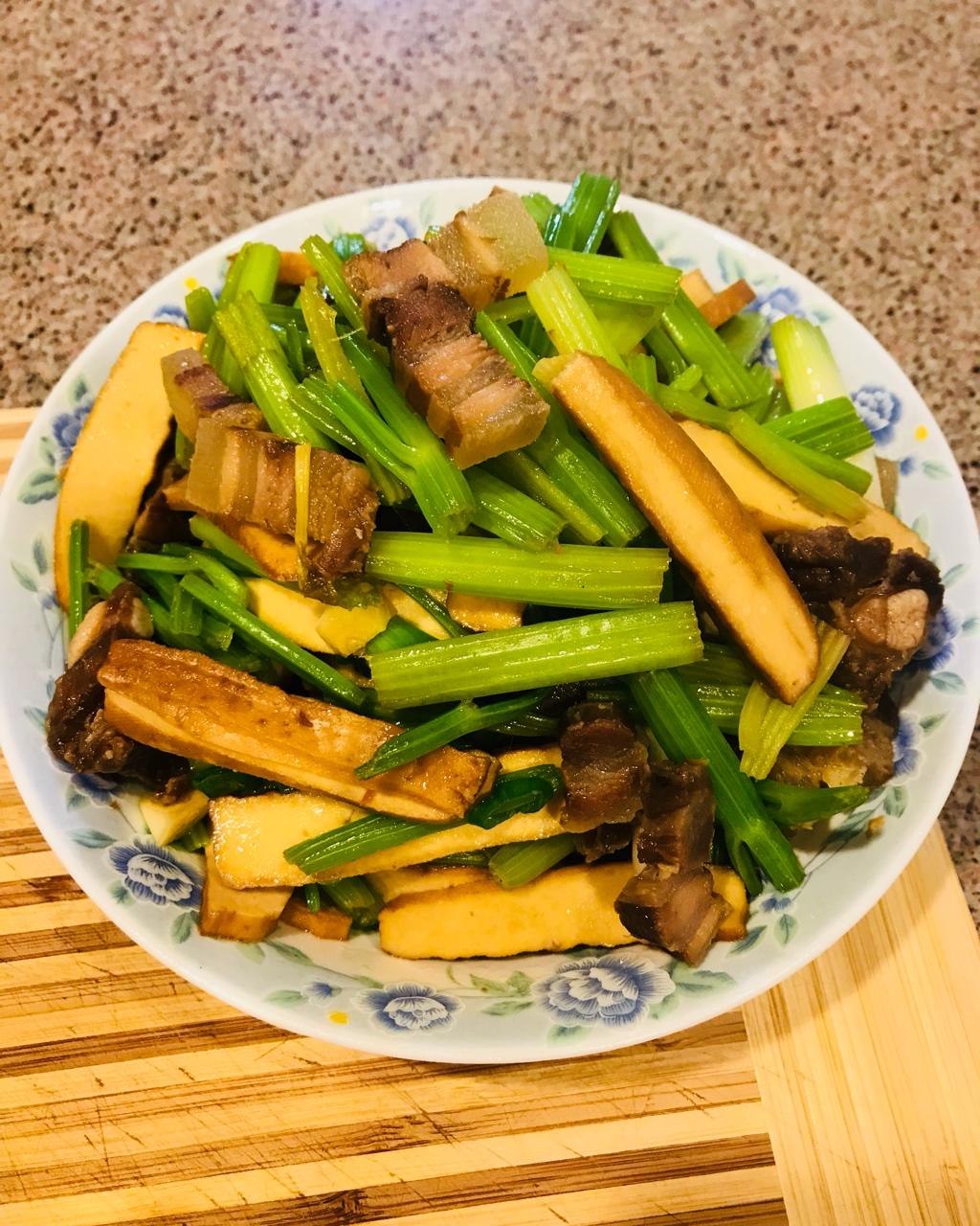 五香豆干炒腊肉芹菜