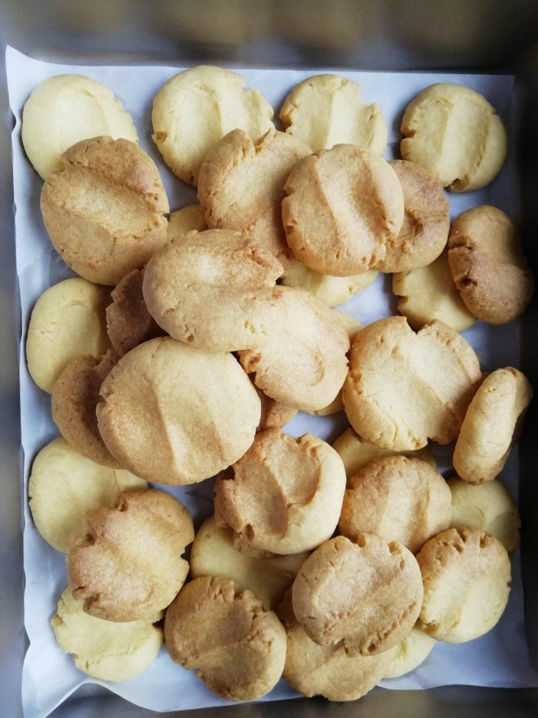 用了两倍的量,加了三个蛋黄,大概烤了30min吧,最后做了32个,可能饼干比较大,...