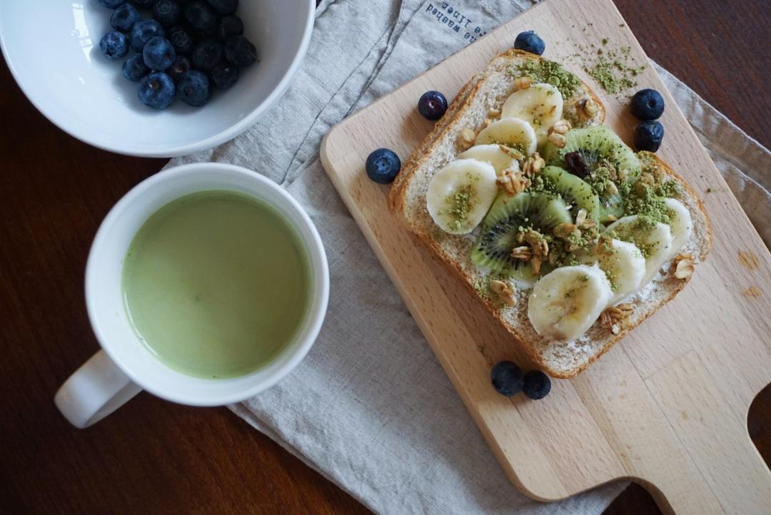 香蕉麦片吐司配抹茶拿铁❤