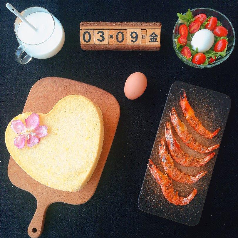 #七七小厨今日食谱:戚风蛋糕,孜然烤虾,蔬菜沙拉,鸡蛋牛奶#