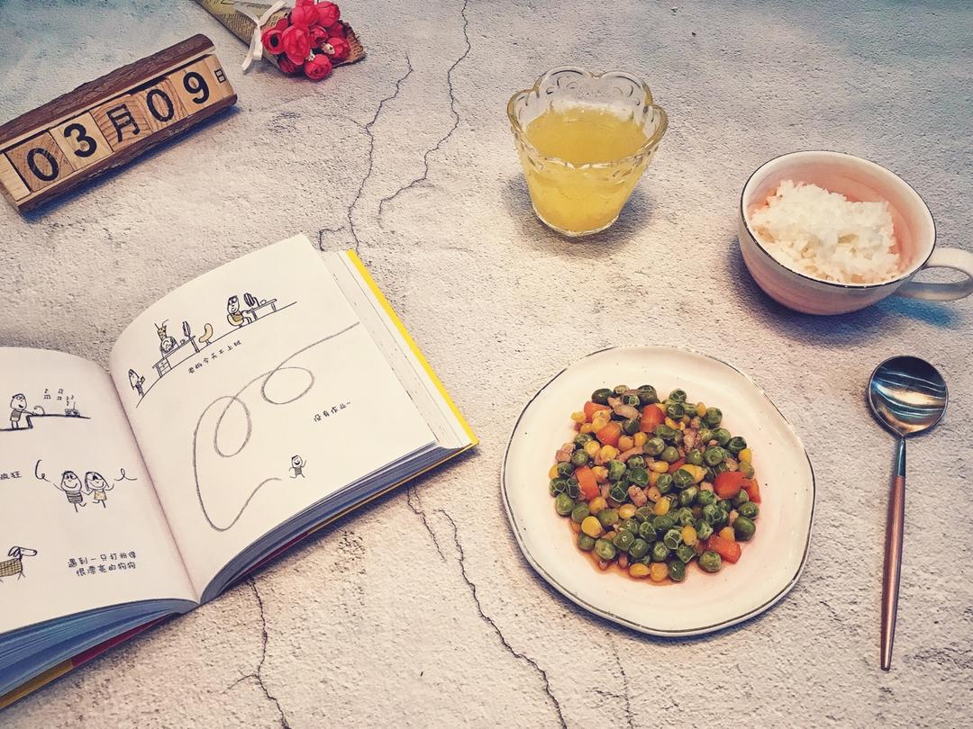 豌豆玉米 白米饭 百香果汁🍹
