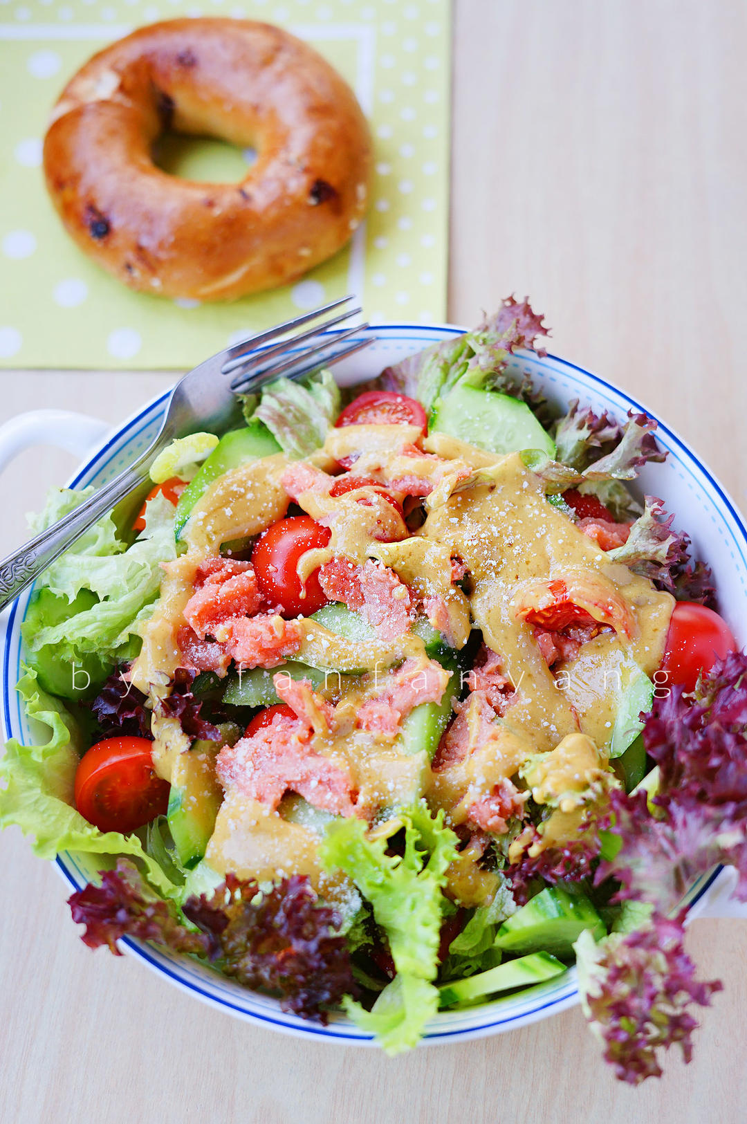蔬菜、咸三文鱼碎