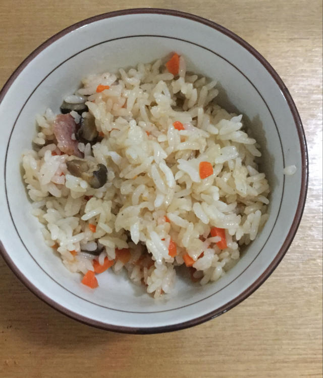 用了家里有的食材,胡萝卜、香菇和香肠,一样😋
