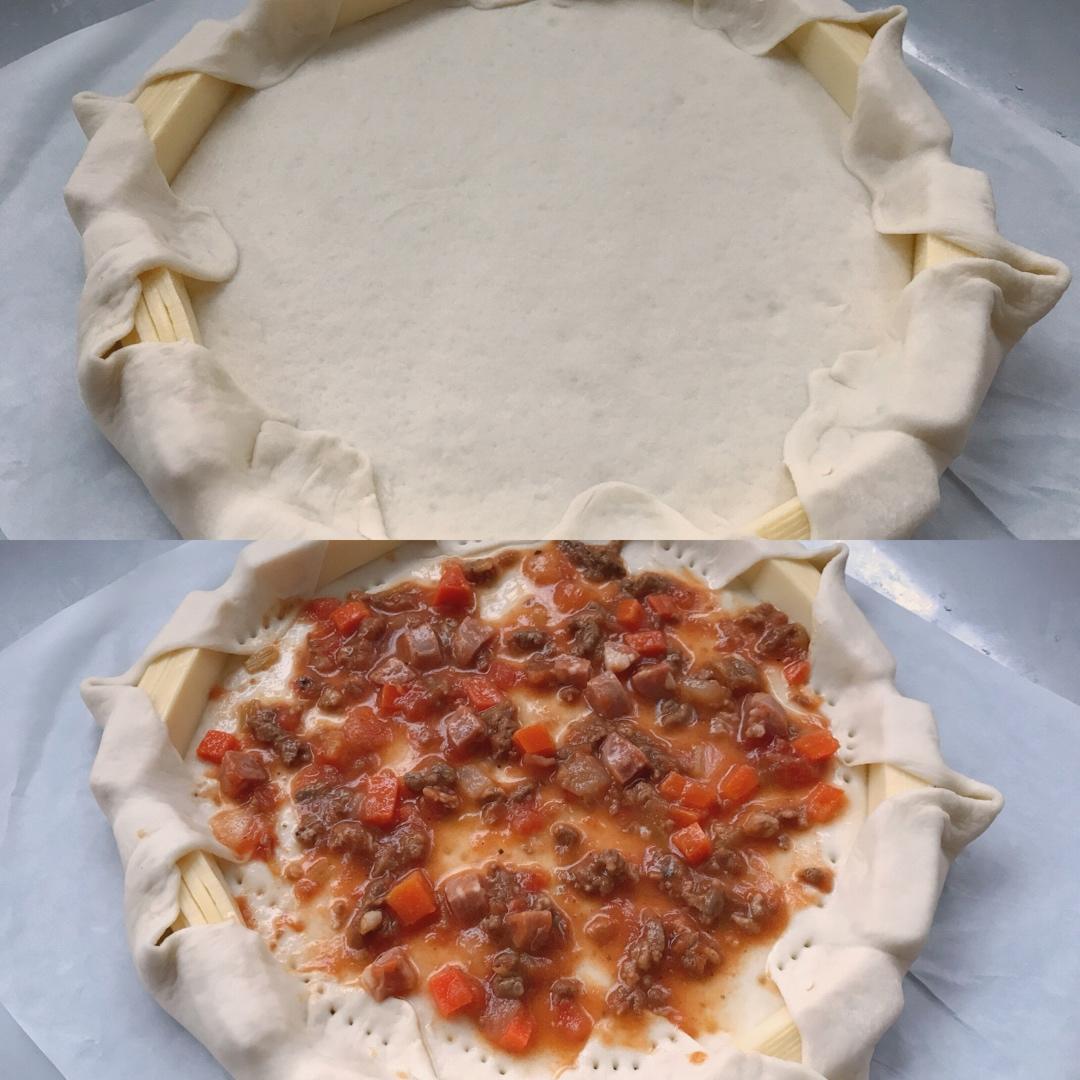 自制牛排芝心披萨~撒满满的芝士~摆满满的肉
