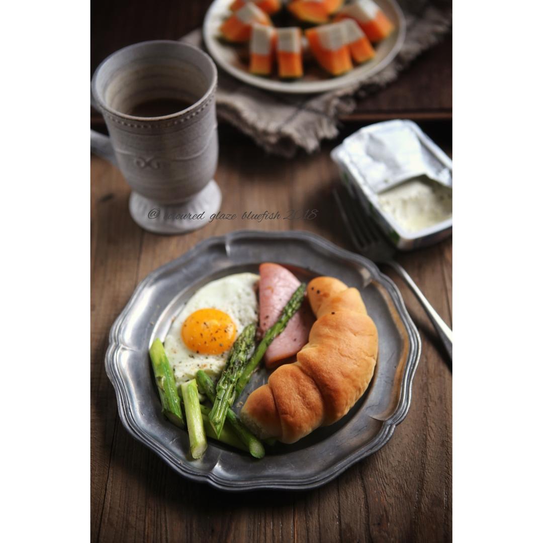 盐面包 火腿片,煎蛋,芦笋