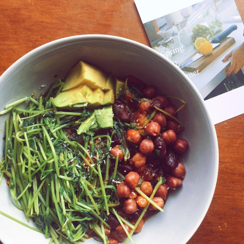 绿豆苗茄汁鹰嘴豆