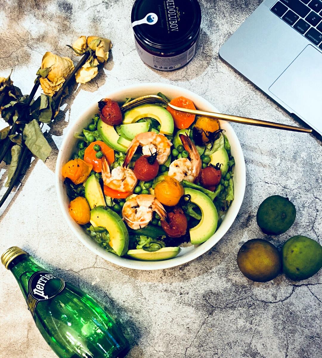 晚餐:牛油果鲜虾蔬菜沙拉