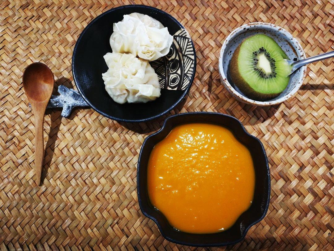 奶油松茸南瓜粥+自制海鲜猪肉烧麦