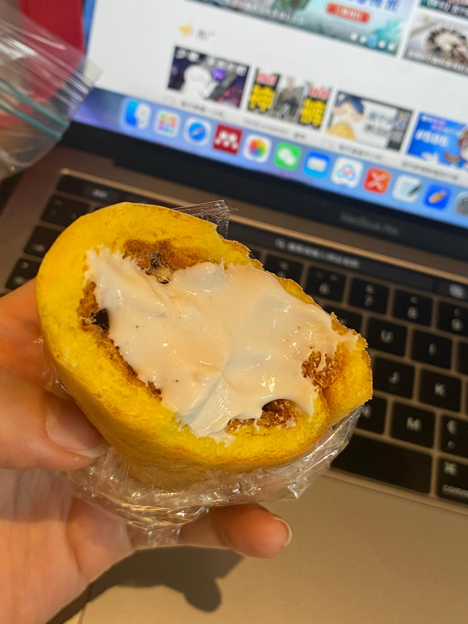 我真的卷了咖喱,吃起来是糯糯的口感,热着吃应该会比较好。不知道为什么 ,煎的时候有股炸鸡味😿