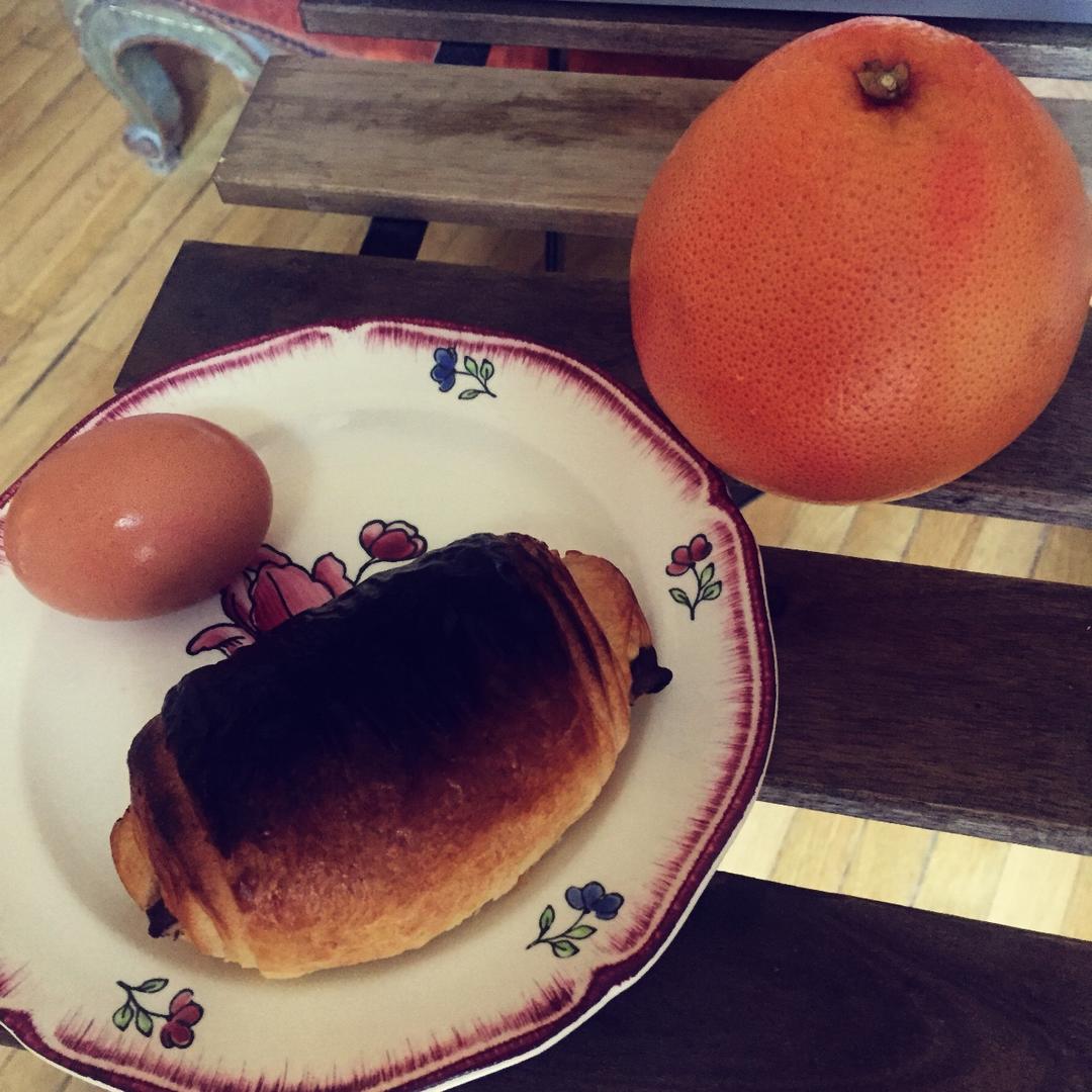 Day 3 #第二届早餐马拉松 果然又把pain au chocolate烤黑了,还能吃🤣 #早餐•2018年6月27日...