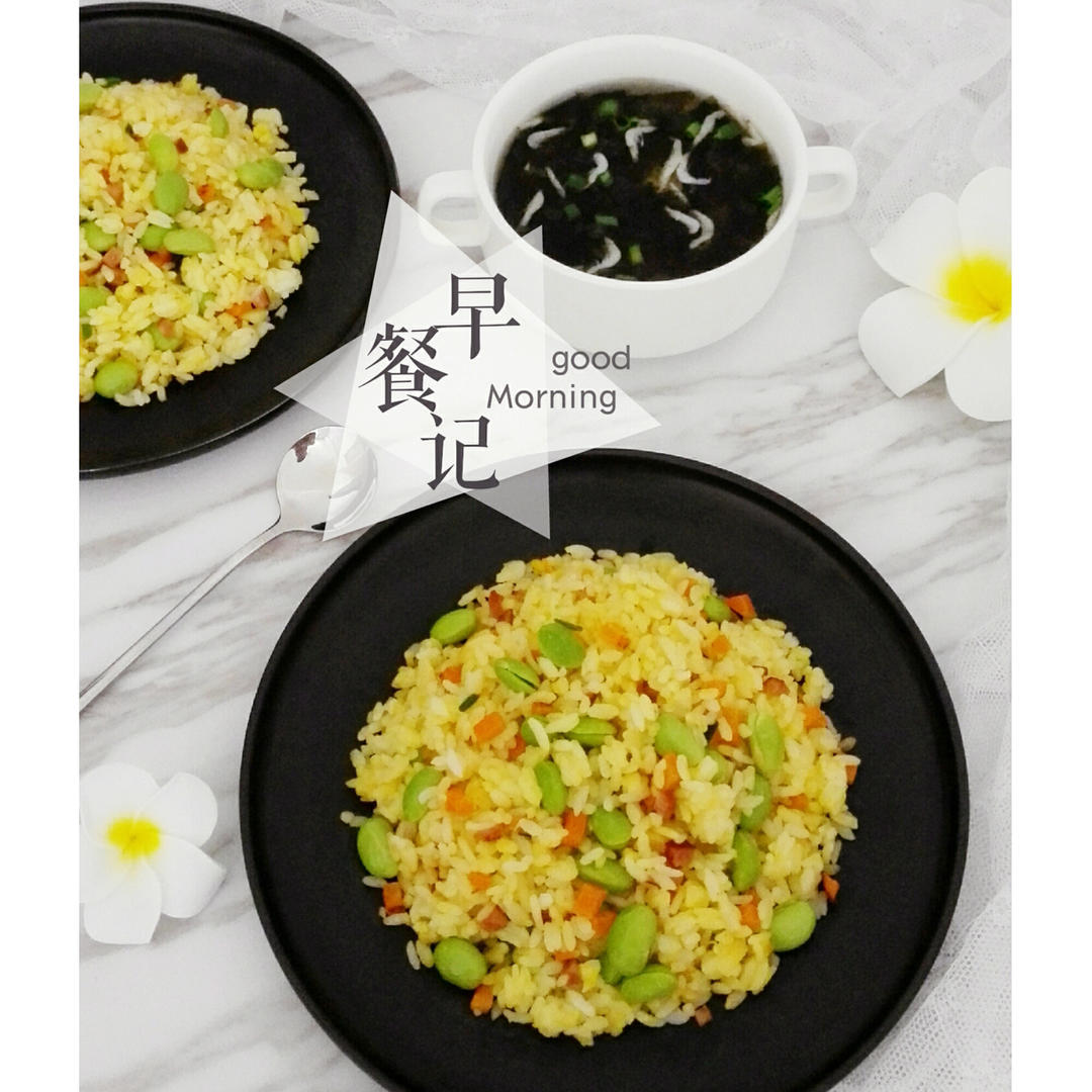 高中生早餐:黄金蛋炒饭+虾皮紫菜汤
