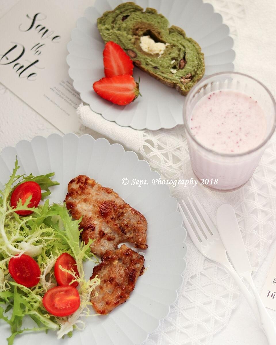 Day5:蒜香蜂蜜煎鸡胸+抹茶软欧+草莓牛奶~🌿