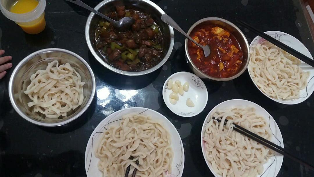 大热天的,吃面条,过水的手擀面,吃着舒服,带劲😍尖椒茄子卤,西红柿鸡蛋卤,北方人吃茄子就得...