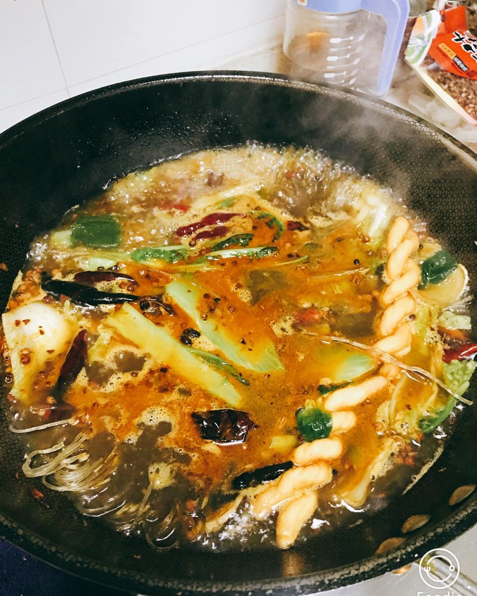 自己炒的底料,站在煤气灶前吃完的火锅🌈