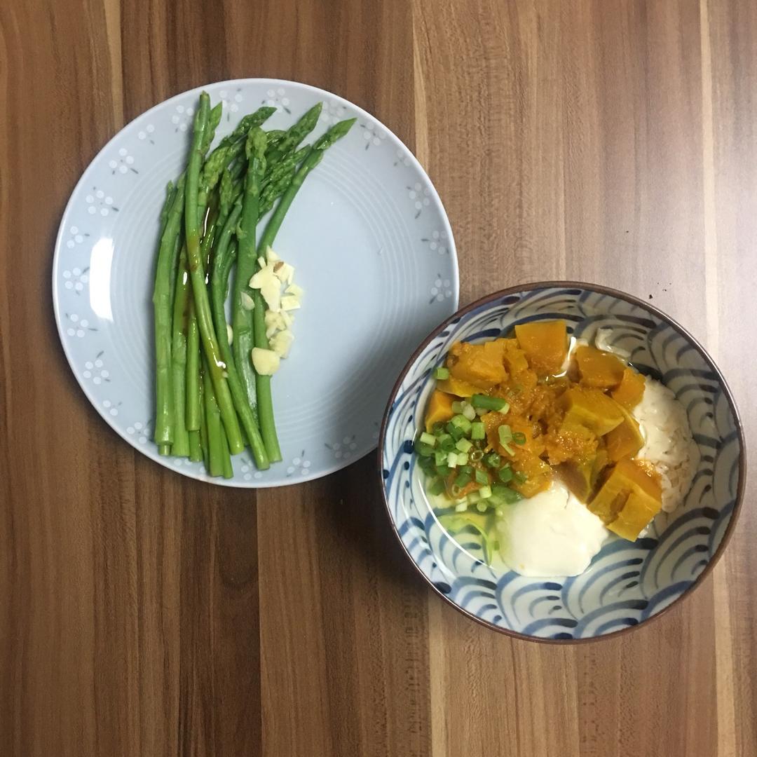 今日の晚餐~南瓜嫩豆腐和芦笋