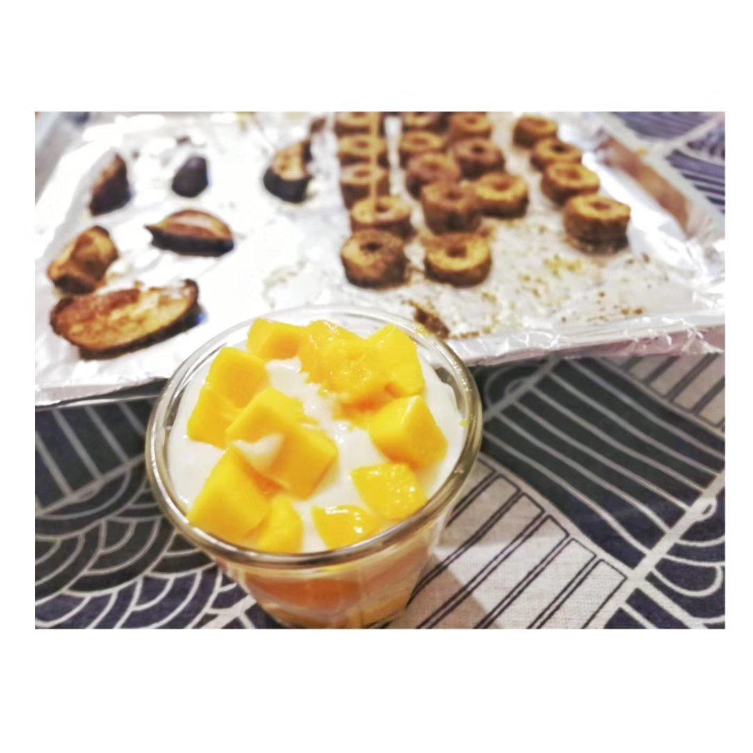 芒果酸奶杯和烤面筋烤香菇🌙