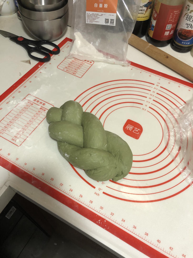 最近做吐司总是翻车,为啥啊……水多了,吐司长不高,抹茶粉的颜色不行,怀疑过期了……不过味道还行...
