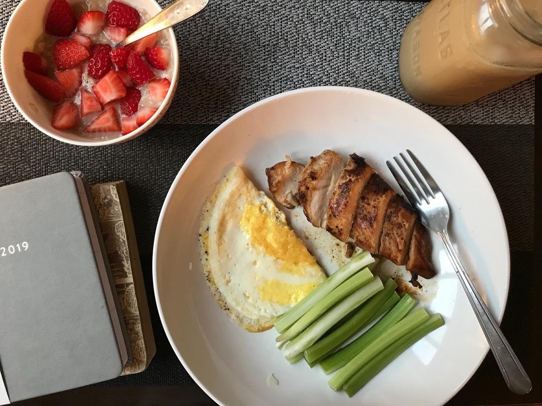 Chicken breast+ fry egg+ cinnamon oatmeal #早餐•2...