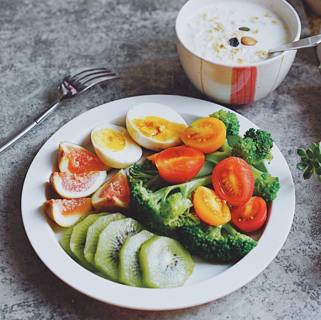 补打卡。今日早餐是:西兰花鸡蛋小番茄沙拉、牛奶燕麦粥、猕猴桃和无花果。