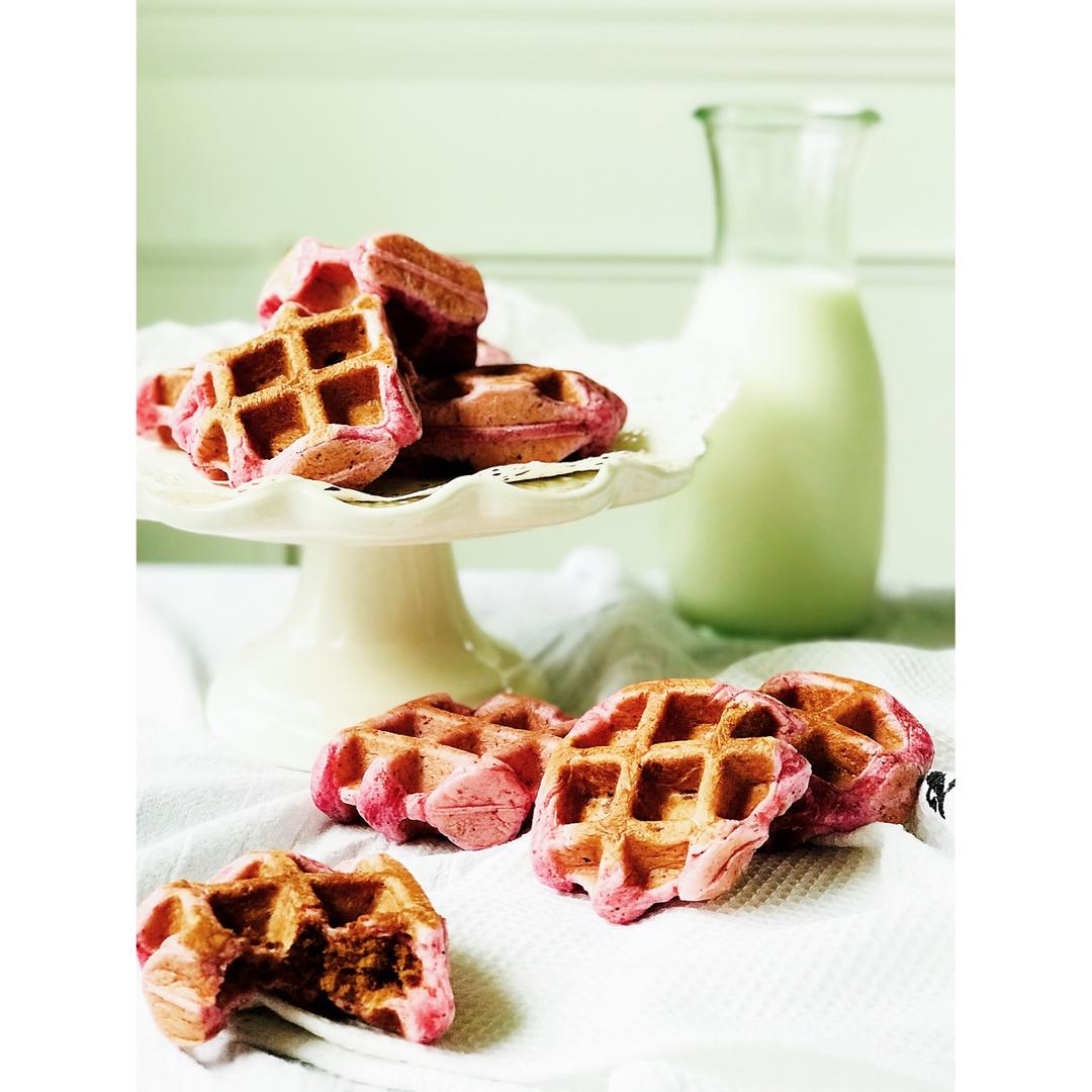 火龙果亚麻籽粉华夫饼, 这急急忙忙的一大早上。胡乱一拍跑人了……