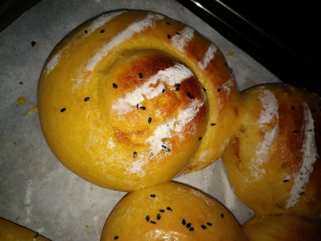 南瓜馅面包。我发现能揉出手套膜的然后又拍照的那些人很强,我没有第三只手拍照。