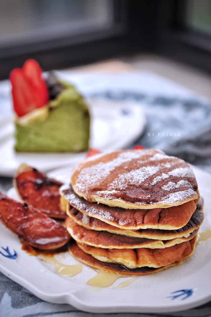匆匆忙忙摊了些松饼,配红糖煎梨吃