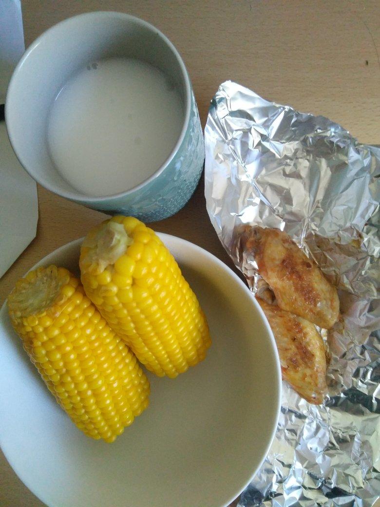 *瓦村记忆*椰子米浆,甜玉米,烤鸡翅,还有半个已经下肚的培根芝士欧包,都是爱吃的,虽然晚餐...