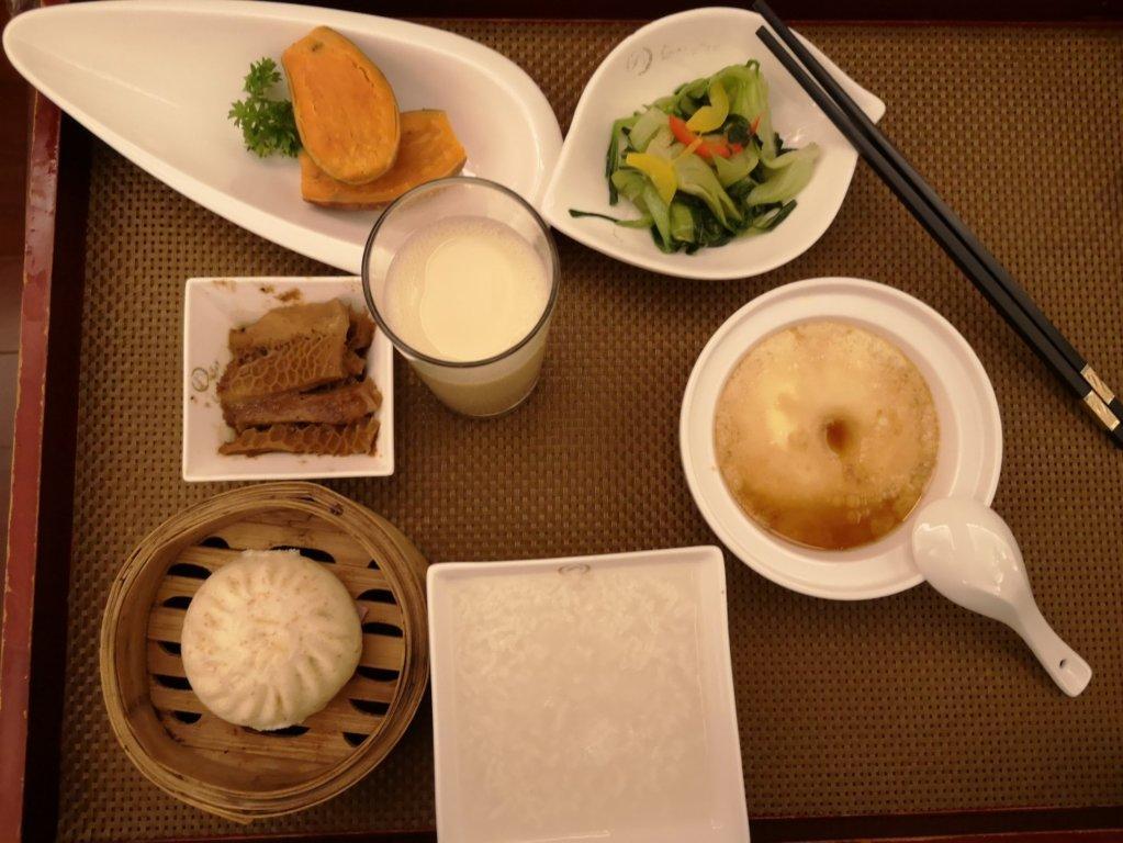 红薯。小青菜,牛肚,豆浆,蒸大肉包子,白粥。