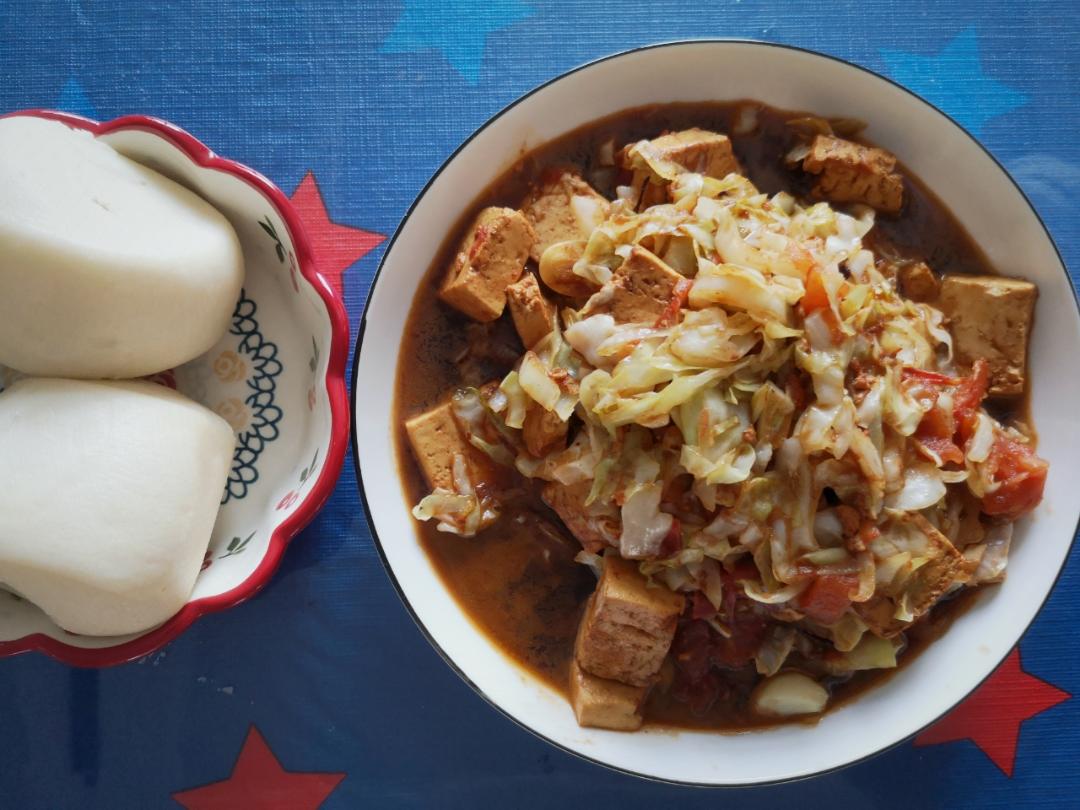 圆白菜西红柿炒豆腐