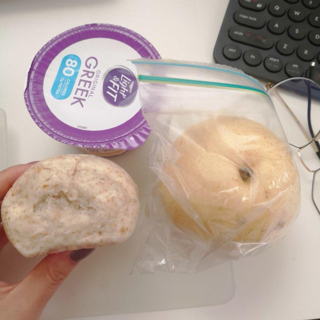 酸奶 杂粮馒头 梨