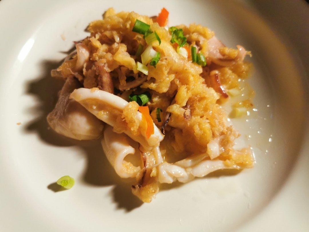 mark:第一次做鱿鱼🦑 ,处理起来太复杂了,剥皮、去内脏,切花刀,当然从结果看,鱿鱼汁水饱满,就是有的鱿鱼片花刀切反了...