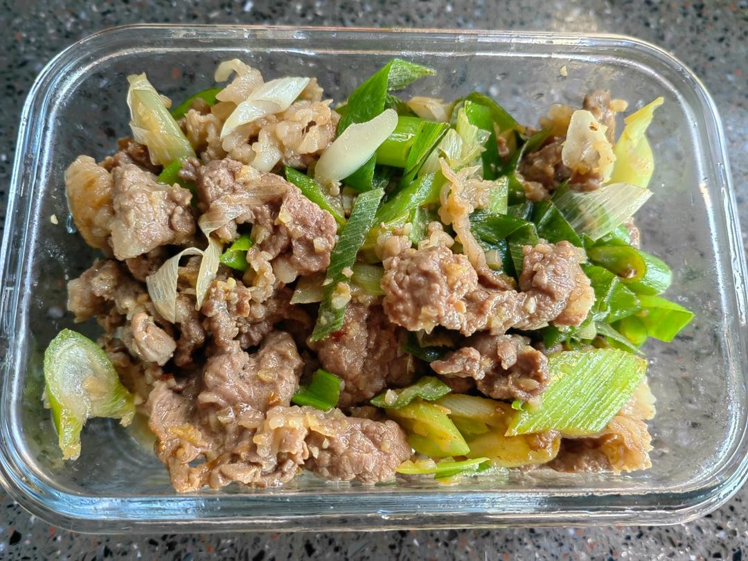 大葱炒肥牛。大半条大葱,三百克肥牛吧。 爆油,蒜末 炒就可以了。 配料 蒜末 孜然 一点点耗油,料酒 盐。葱花多余 撒了...
