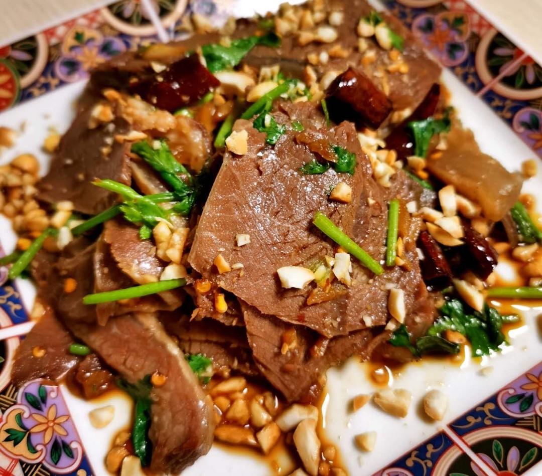 牛肉提前用盐腌两天再炖,拌时加了花生碎,更香~