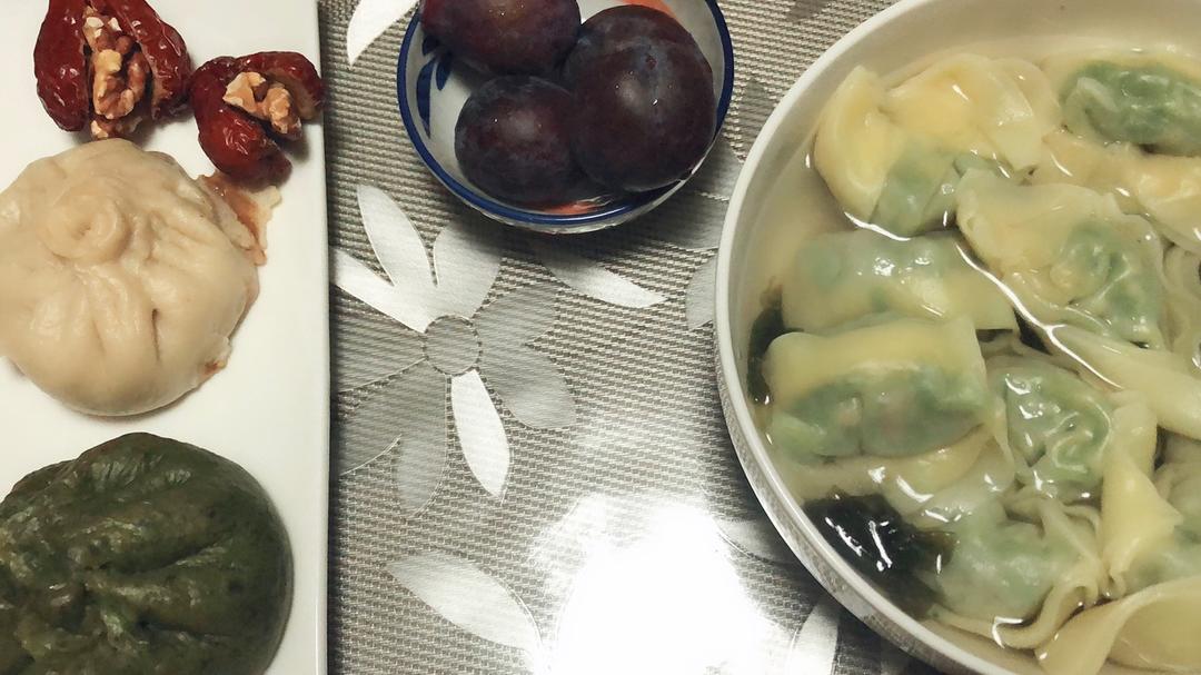 周四 荠菜馄饨 香菇肉包 核桃夹枣 西梅