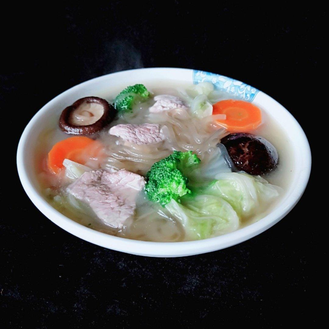 【田园蔬菜肉片粉丝汤】