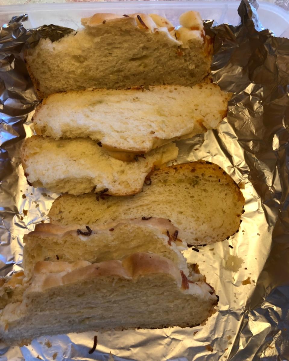今天的早餐是昨晚用中筋粉做的蒜香面包……😀