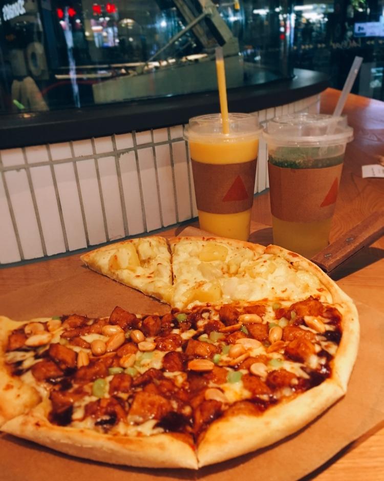昨天撸完铁就吃了榴莲pizza,哈哈哈哈哈好好次