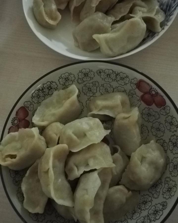芹菜牛肉胡萝卜馅儿饺子~忘记好好拍照了~最近胖到了产前的体重,奔溃~