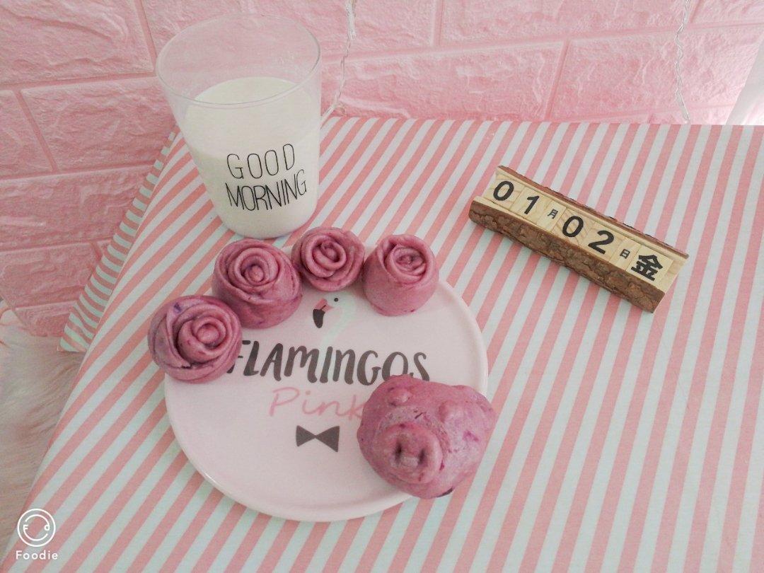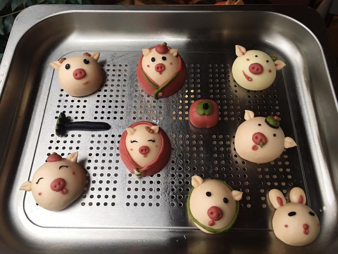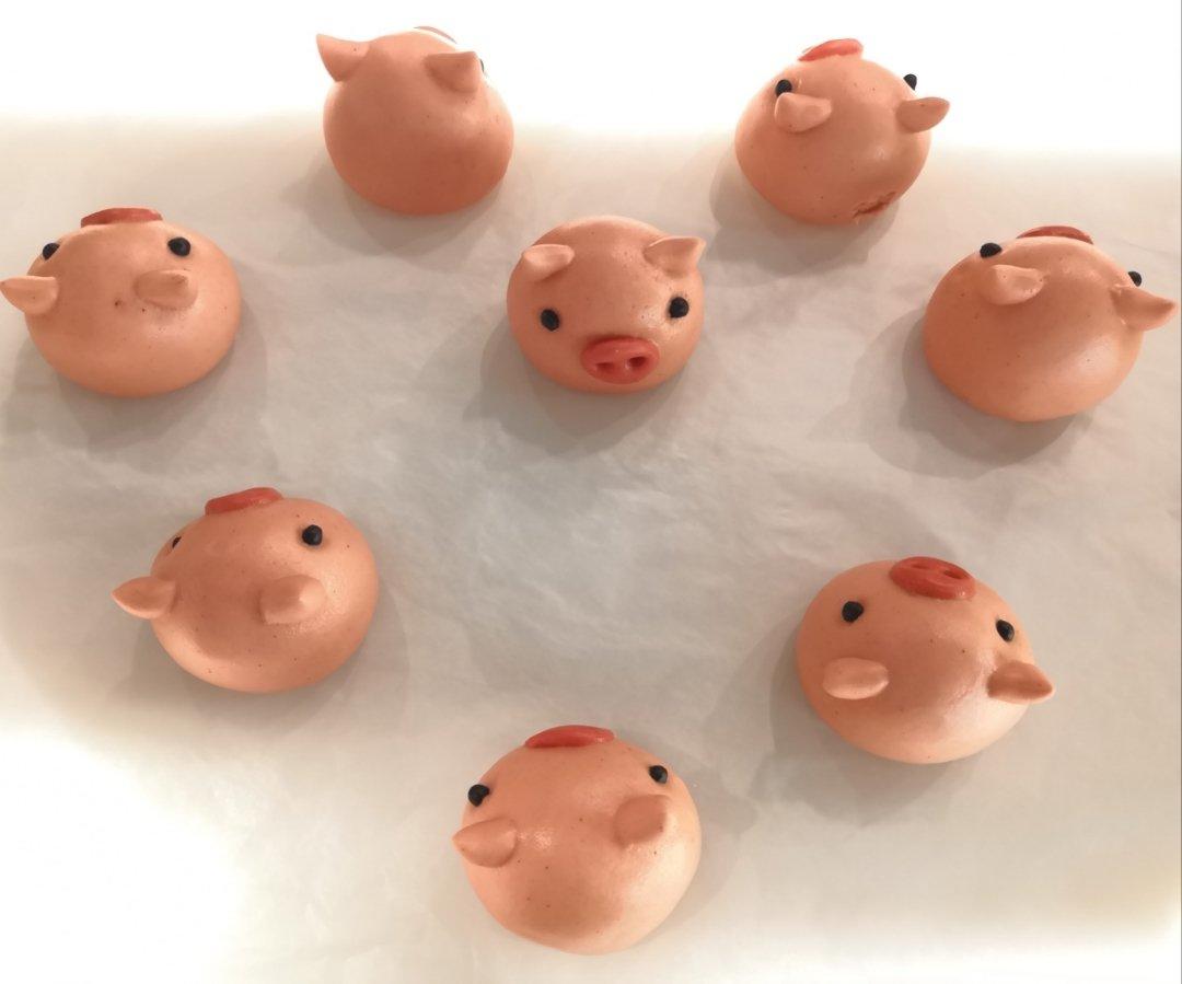 猪年要来了,做了呆萌可爱的猪猪包(⁎⁍̴̛ᴗ⁍̴̛⁎)把原方子的红薯换了紫薯,给猪猪戳鼻孔的...