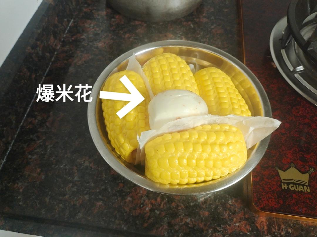 妈妈往玉米包上丢了个红豆小馒头