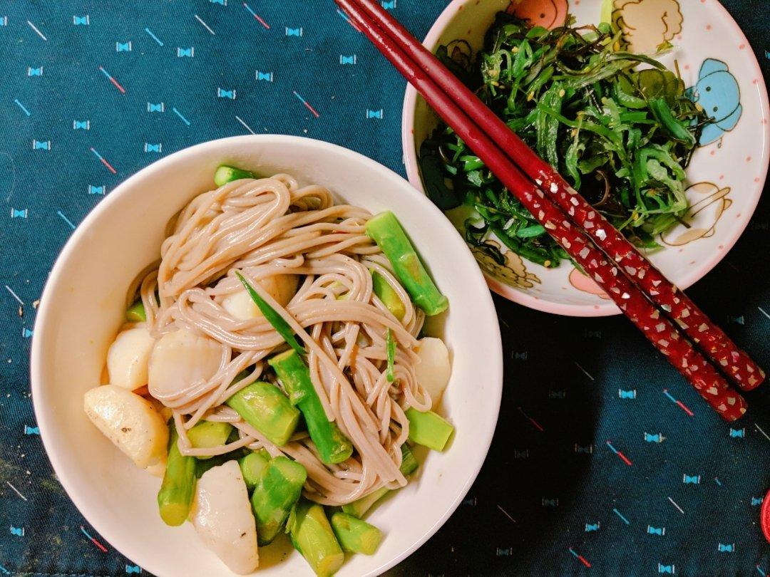 扇贝芦笋荞麦面~放一点黄油煎带子真的是鲜的不行~拌个面汤也不浪费~_(┐ ◟ᐕ)¬_