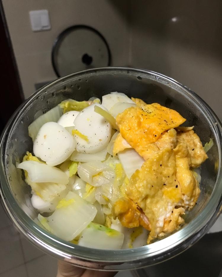 白菜鸡蛋炒年糕,满满一碗,暖暖的💚