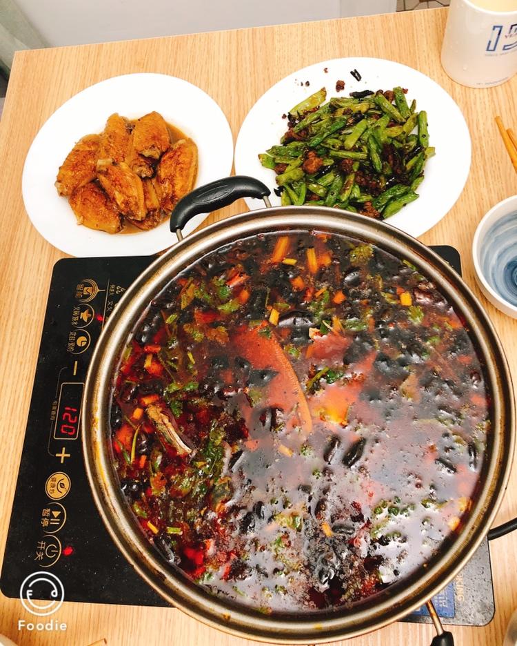 2019.01.24晚餐:鱼火锅+干煸四季豆+可乐鸡翅