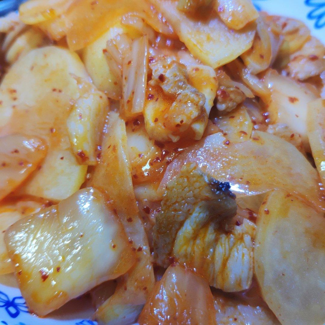 辣白菜炒土豆五花肉