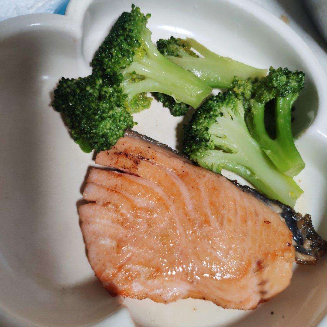 煎三文鱼、凉拌西兰花、皮蛋拌豆腐。主食:白粥。用奶奶的话说就是“郁嘬”!!