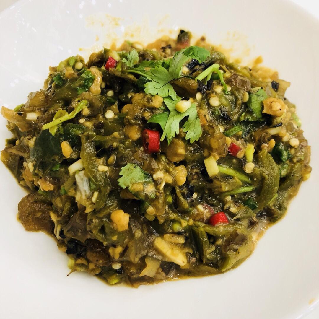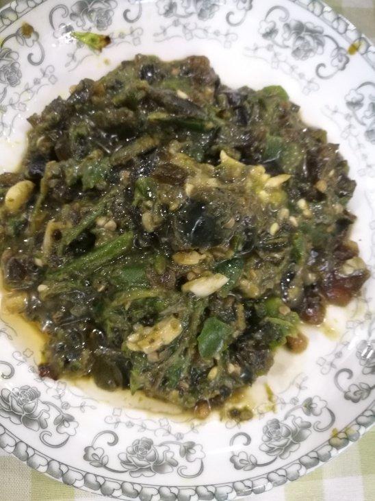 先将螺旋椒干煸,然后加入蒜蓉油继续煸,煸熟,加入皮蛋,蒜蓉,蒸鱼豉油,香油,蚝油,生抽,醋,鲍鱼汁,用汤勺擂碎,出锅,味...