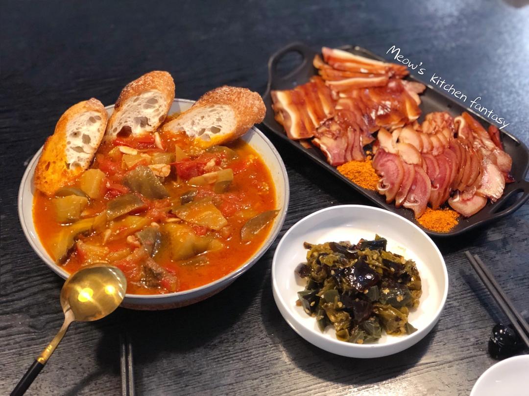 法棍烤脆蘸西红柿茄子真绝了